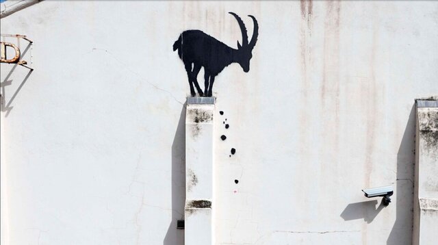 به گزارش ایسنا، «بنکسی» از جدیدترین اثر هنری خود رونمایی کرد که یک بز را درحالی که بالای یک ستون متصل به دیوار ایستاده است و چند تکه سنگ نیز از زیر پای او به زمین می‌ریزند، نشان می دهد.