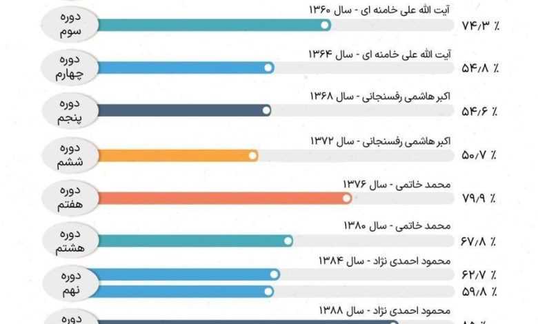 میزان مشارکت مردم در ادوار ریاست جمهوری ایران